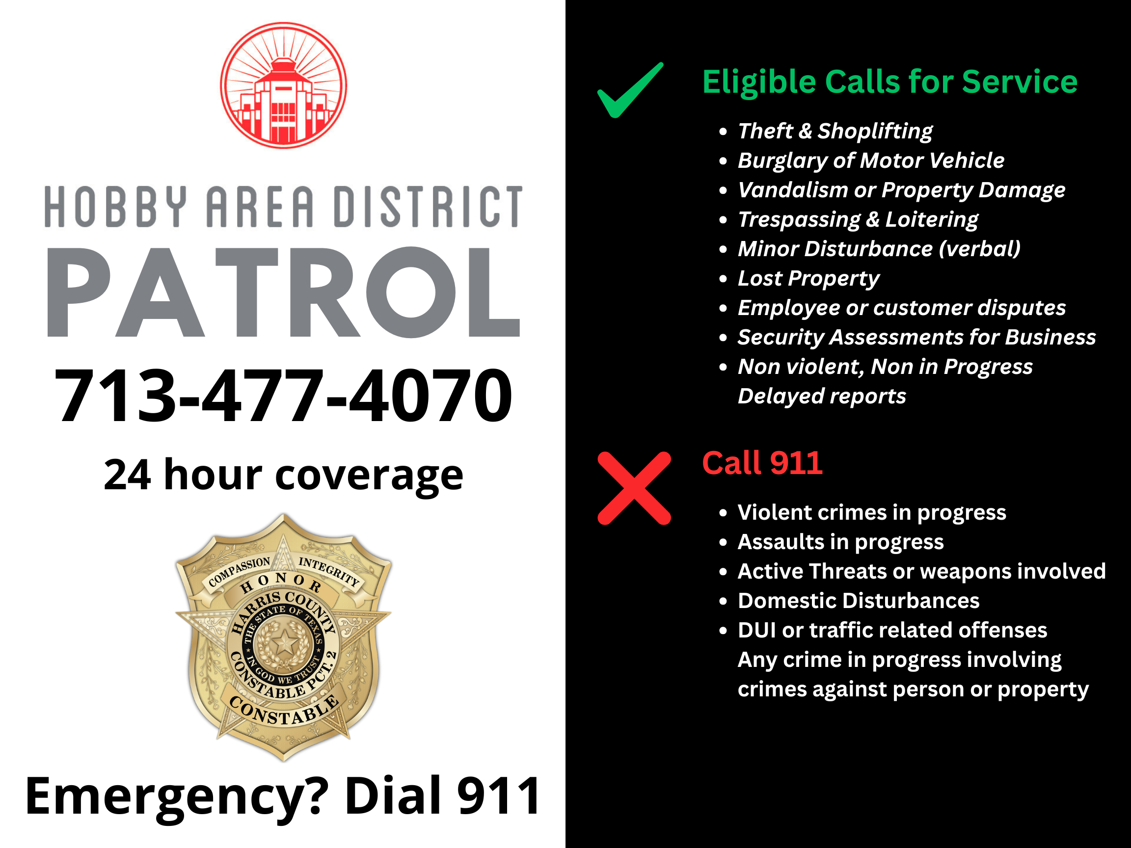 To help fill in the gaps, we’ve contracted with Houston Area District Patrol to add extra patrols and security details in areas identified as needing additional support.